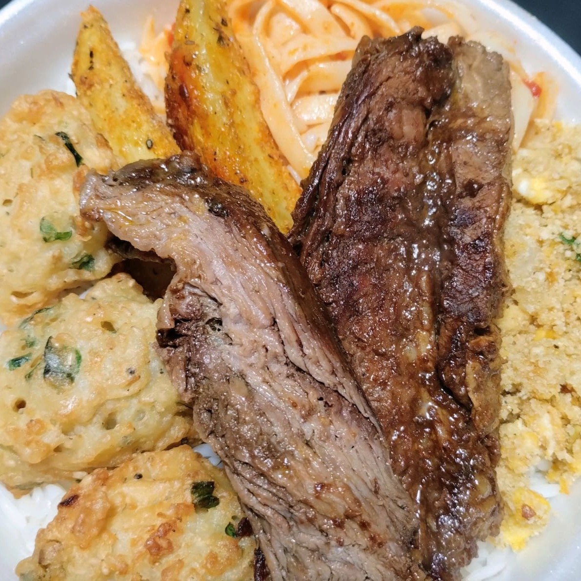 Uma refeição completa, caprichada e bem servida, feita com todo carinho. Arroz, feijão, proteína à sua escolha, acompanhamentos variados e saladinha fresca. Ideal para matar a fome com muito sabor e aquele tempero caseiro que você já conhece!