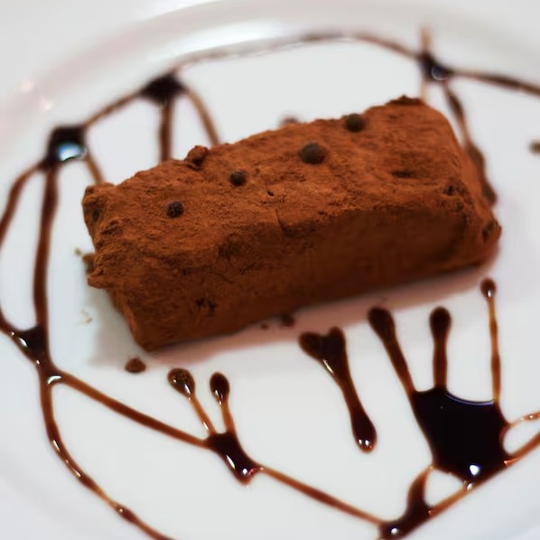 Trufa de chocolate meio amargo, passado no cacau, para comer de colher.