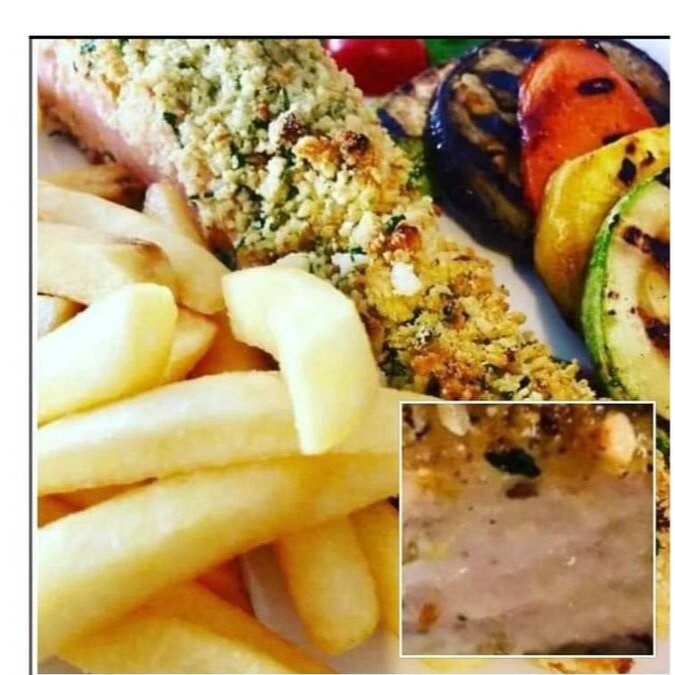 Filé de Salmão Grelhado com opção de molho ou na crosta de castanhas, com acompanhamentos e salada, a escolher