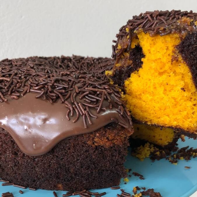 A massa é feita com cenouras naturais fresquinhas e a cobertura de brigadeiro preenche com delicadeza o centro e topo do bolo.