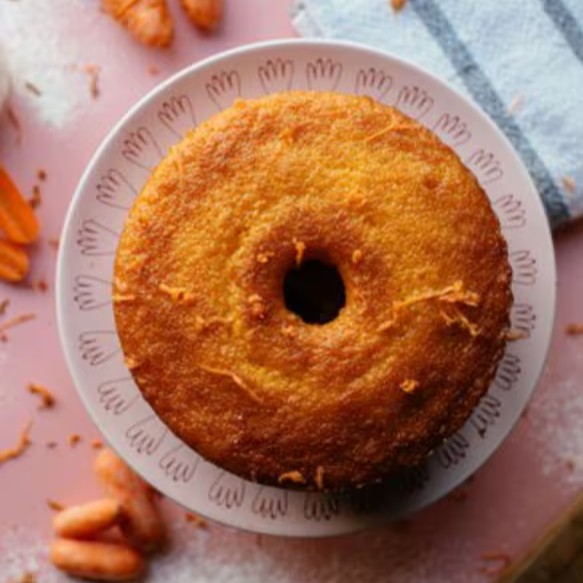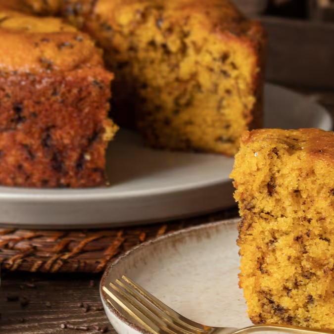 Bolo com cenouras fresquinhas de granulado na massa. Experimente!