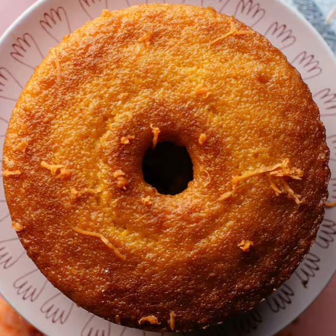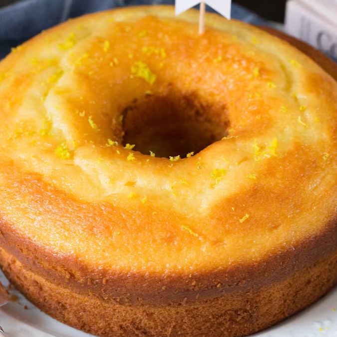 Feito com iogurte natural caseiro e suco de laranja. Ele desmancha na boca, como os bolos caseiros de vó.