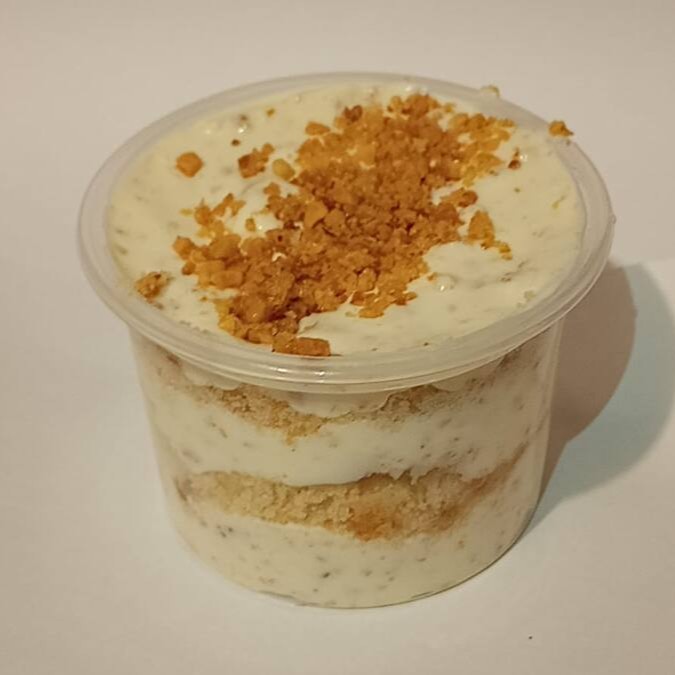 Desfrute de um delicioso 'Bolo de Prestígio' da categoria 'Bolo de Pote'. Este deleite é composto por uma massa branca leve e aerada, que proporciona uma textura incrivelmente suave. O recheio, uma generosa porção do clássico Prestígio, alia o doce sabor do leite condensado ao exótico sabor do coco, resultando em uma combinação que vai fazer seu paladar viajar. A cada mordida, a mistura desses sabores irá te surpreender e te deixar com vontade de saborear cada vez mais deste bolo irresistível.