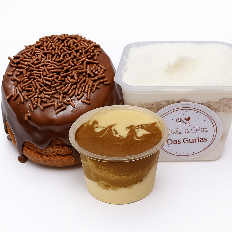 O Combo Perfeito é uma seleção irresistível que irá alegrar o seu Dia, composta pela seguinte delicadeza: um Mini Vulcão, feito com uma massa amanteigada suave e envolto por uma rica ganache de chocolate que derrete na boca. Além disso, um Bolo de Pote Quatro Leites, aveludado e doce na medida certa, que traz o equilíbrio perfeito dos quatro tipos de leite. E, para finalizar, um Mini Bolo de Pote Prestígio, que combina o sabor intenso do coco com a riqueza de um chocolate cremoso. Este é o Combo das Gurias, projetado para melhorar o seu Dia com essas pequenas delícias!