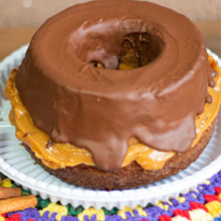 Bolo sabor pão de mel, recheado com delicioso doce de leite e coberto com chocolate ao leite. Tamanho médio, aproximadamente 850 gramas, serve em média 8 fatias.