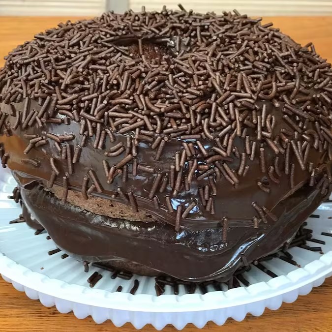 Massa de chocolate coberto com brigadeiro 50% cacau