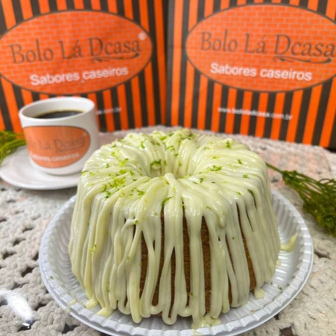 Bolo fofo de leite, com raspas de limão na massa e coberto com uma deliciosa calda de limão. Tamanho médio. Aproximadamente 500 gramas. Serve em média 8 fatias.