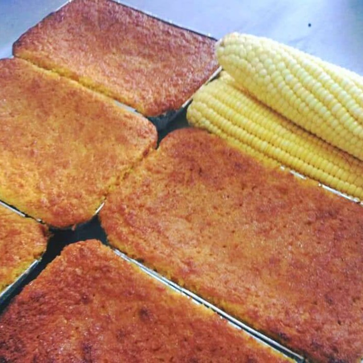 Bolo de milho doce. Tamanho médio. Aproximadamente 600 gramas, serve em média 8 fatias.