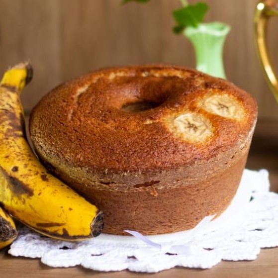 Bolo de banana. Tamanho médio. Aproximadamente 500 gramas. Serve em média 8 fatias.
