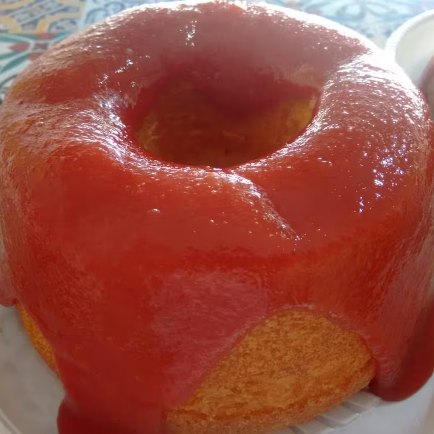 Bolo de fubá, coberto com goiabada cremosa. Tamanho médio. Aproximadamente 700 gramas. Serve em média 8 fatias.
