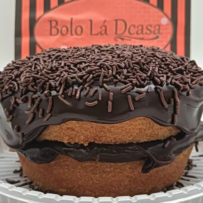 Bolo de Leite Ninho Original. Cobertura de brigadeiro. Tamanho médio. Aproximadamente 700 gramas. Serve em média 8 fatias.