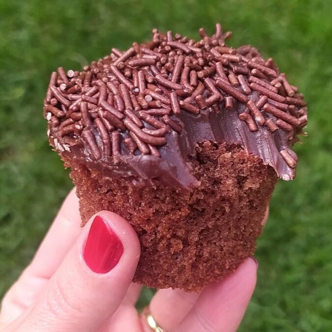 Massa de chocolate, coberto com brigadeiro 50 % cacau.