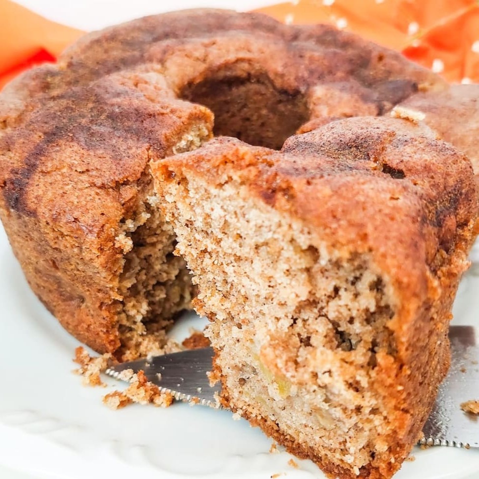 Bolo bem fofinho e umido, com pedaços de maçã na massa. Peso aprox 750gr. Rende de 10 a 12 fatias