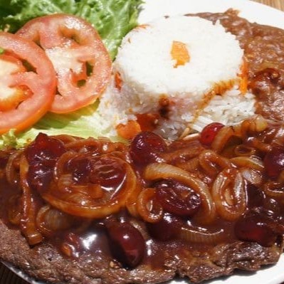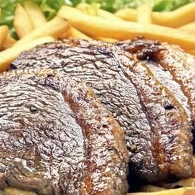 Um suculento filé argentino acompanhado com arroz, feijão e Fritas. Acompanha salada separada de cortesia.