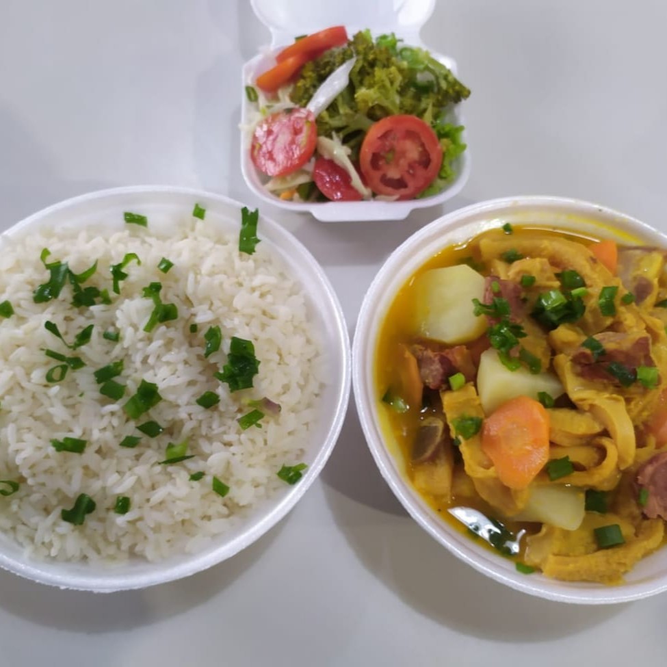 Uma porção deliciosa de Dobradinha (750 grama), acompanhada com uma porção Grande de arroz. Acompanha salada separada de cortesia.