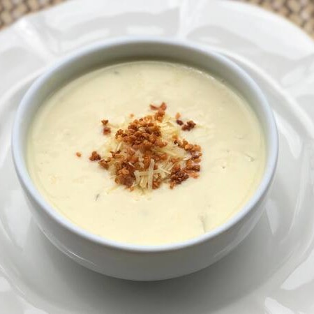 Creme de palmito com pedaços de palmito.