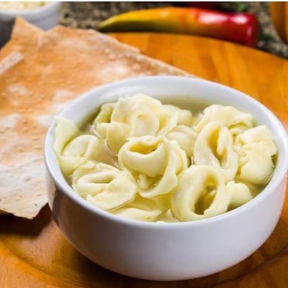 Caldo de galinha com capeletti de frango.