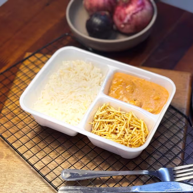 Estrogonofe de Frango Preparado com pedaços suculentos de peito de frango, mergulhados em um molho cremoso e encorpado, com um toque de mostarda e ketchup, e finalizado com batata palha crocante Acompanha arroz branco soltinho e, para os amantes de um toque a mais, sugiro adicionar uma saladinha.