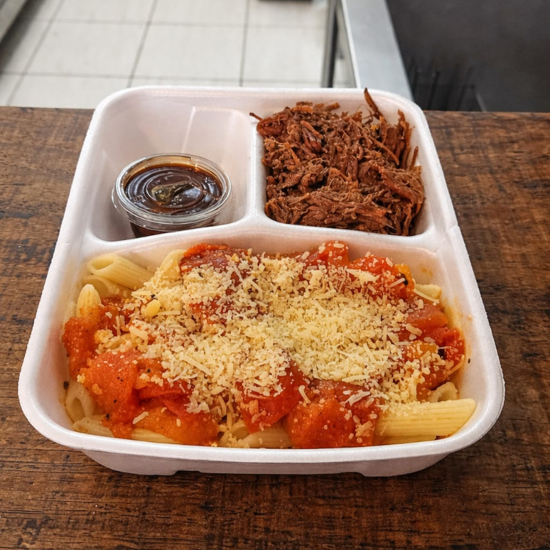 Macarrão Pomodoro + Costela Desfiada