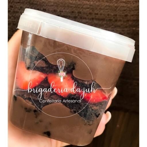 Brownie No Pote Com Brigadeiro Branco E Morango