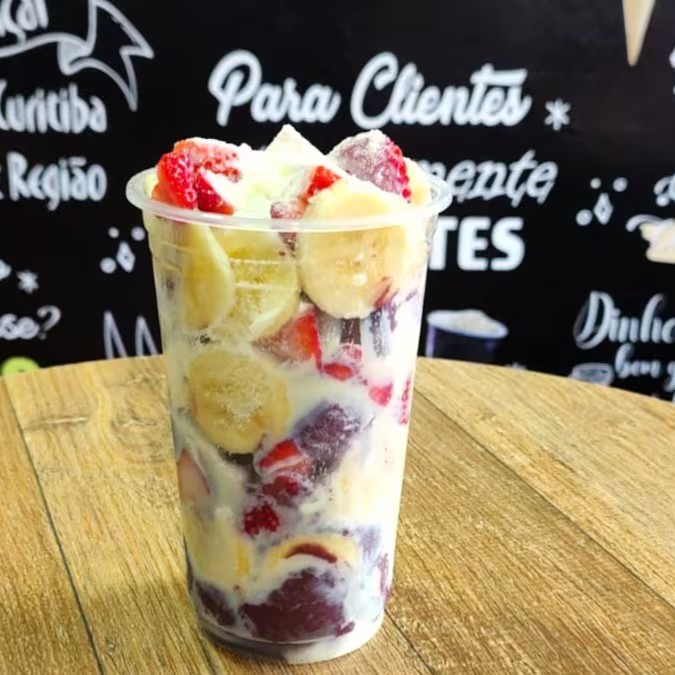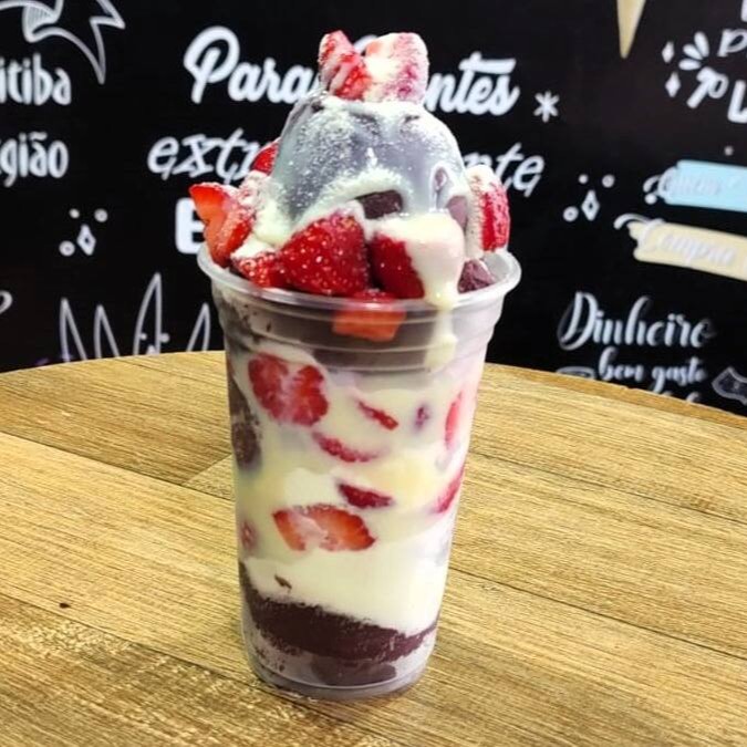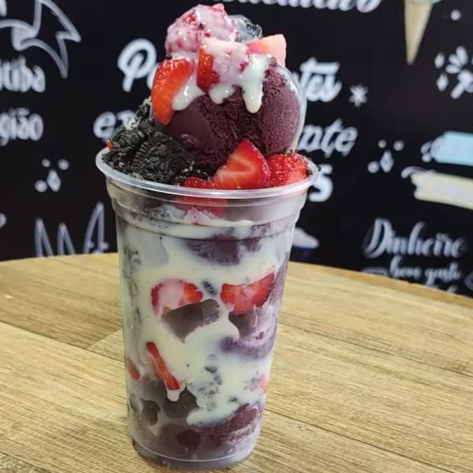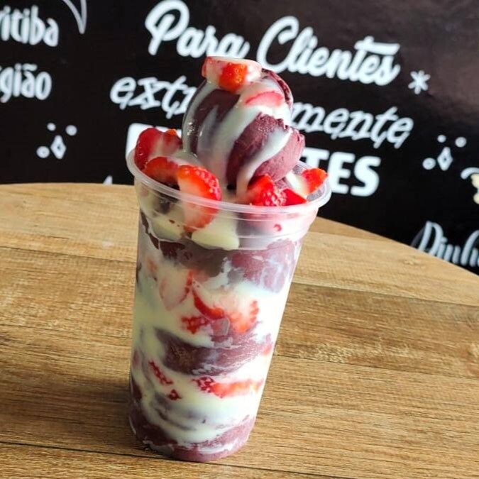 Perfeita combinação de Açaí, Morango, Leite Cond. Moça e Leite em Pó.