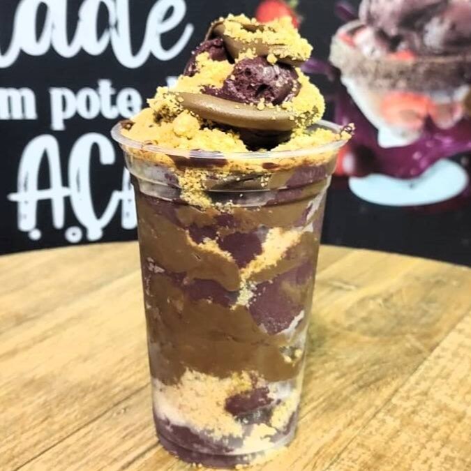 Deliciosa combinação de Açaí com muito Chocolate c/ Avelã e Paçoca.