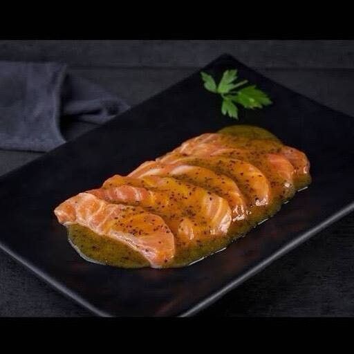 (200g) Salmão, cebola roxa, pimentão e temperos.