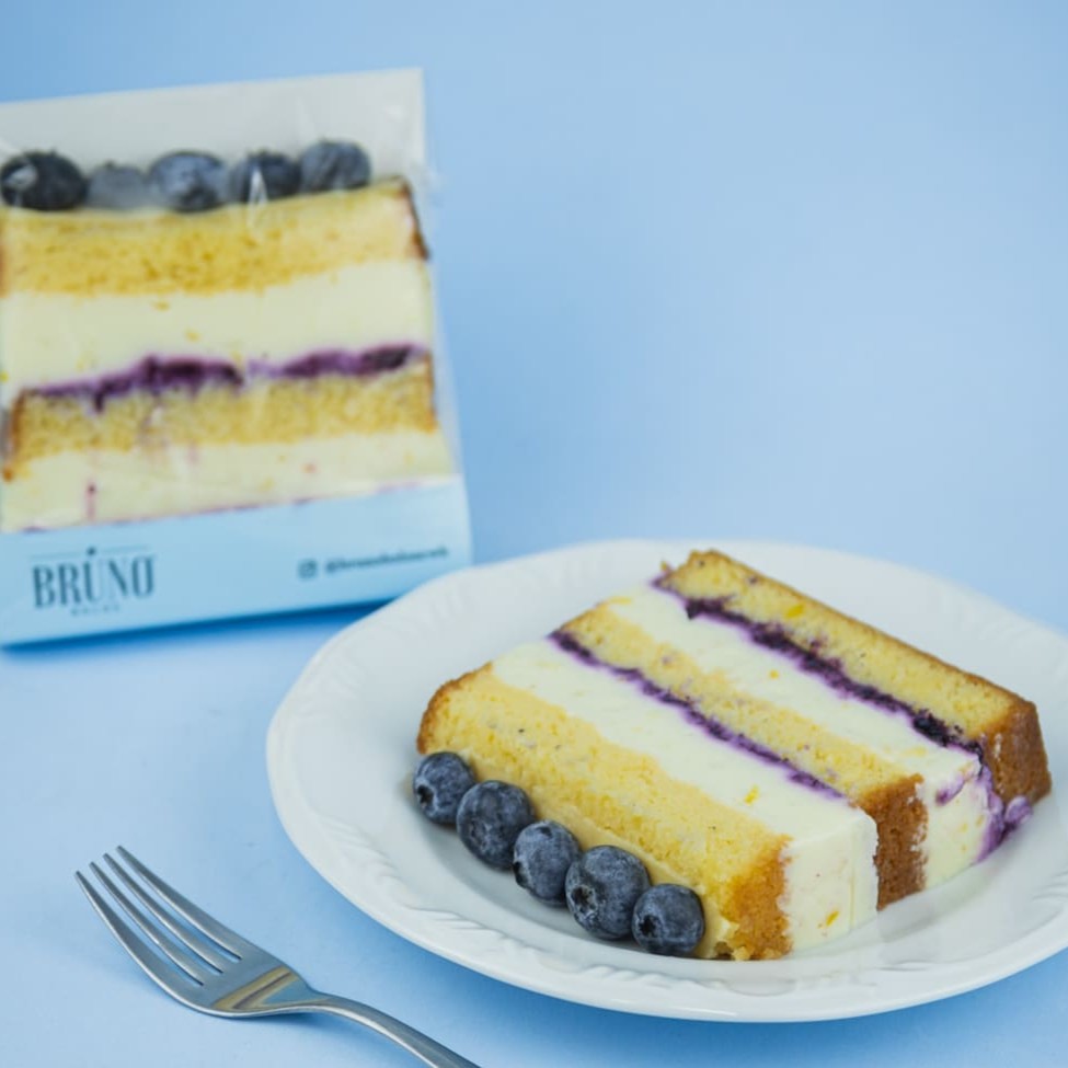 Fatia De Bolo Mousse De Limão E Mirtilo
