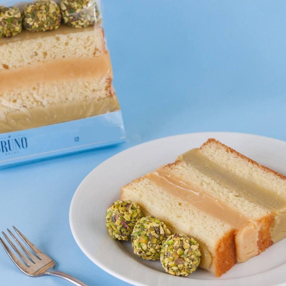 Bolo Amora 4 leites + pistache. Aprox. 200g.