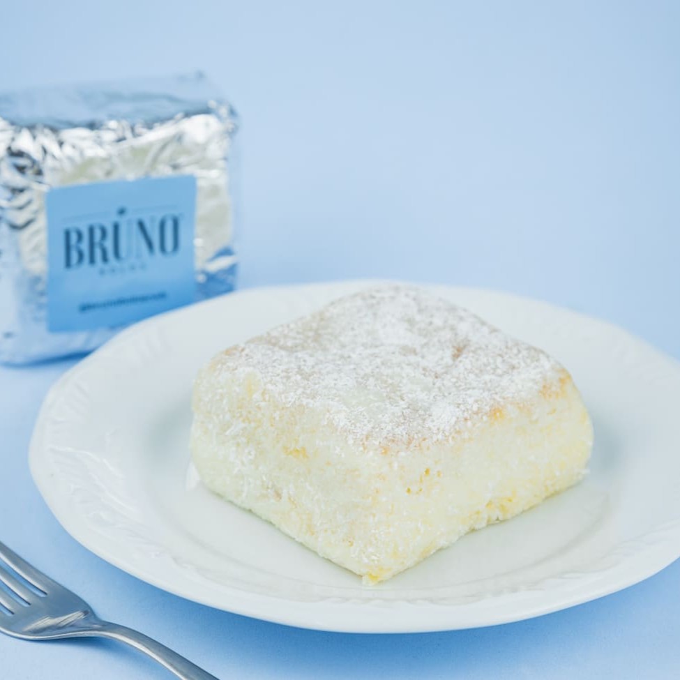 Massa branca molhadinha, recheio de brigadeiro de coco cremoso. Aprox. 200g.