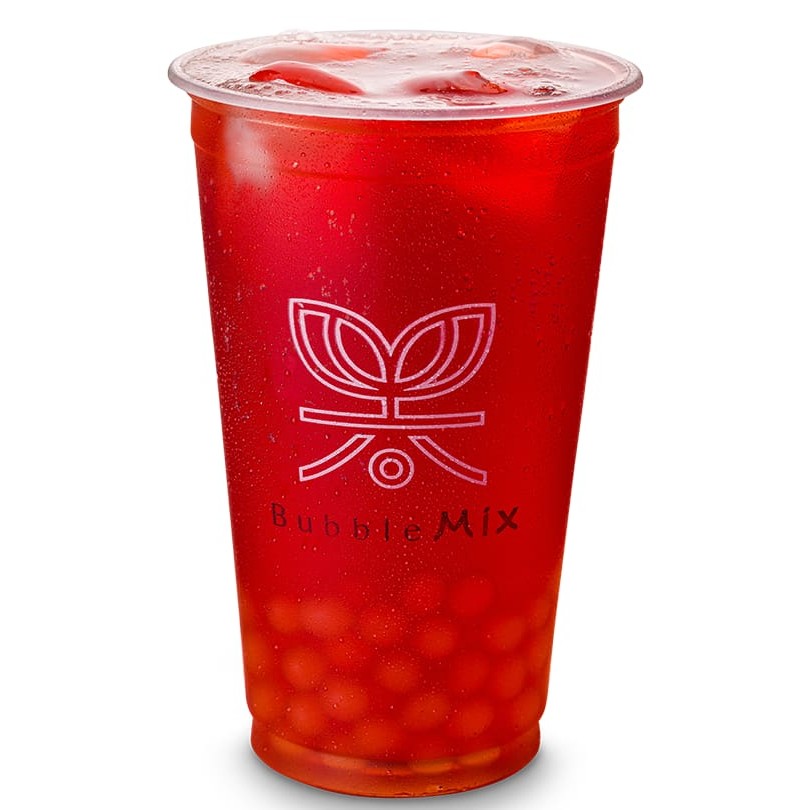 Uma bebida refrescante feita com chá de hibisco, essência de morango e um toque de limão. Escolha o seu acompanhamento favorito. Recomendamos poppings ou jellys. Escolha o acompanhamento.