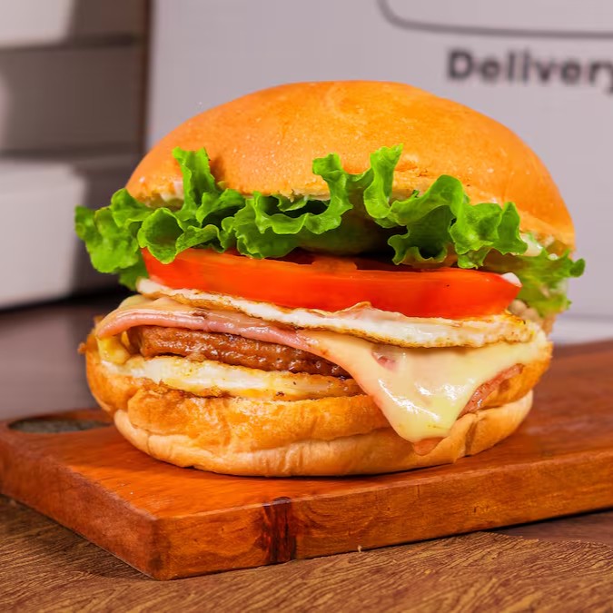 Pão fresquinho sem conservantes, 2 ovos, deliciosa maionese da casa , hambúrguer tradicional 56g, queijo, presunto, alface e tomate + cini 500ml O Verdadeiro X-Egg Tradicional.