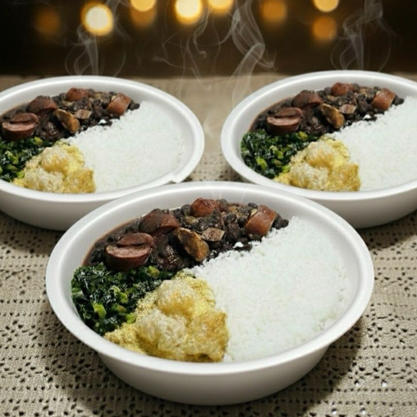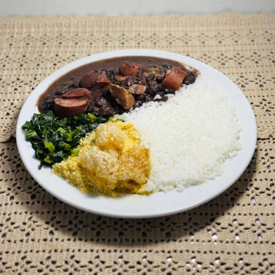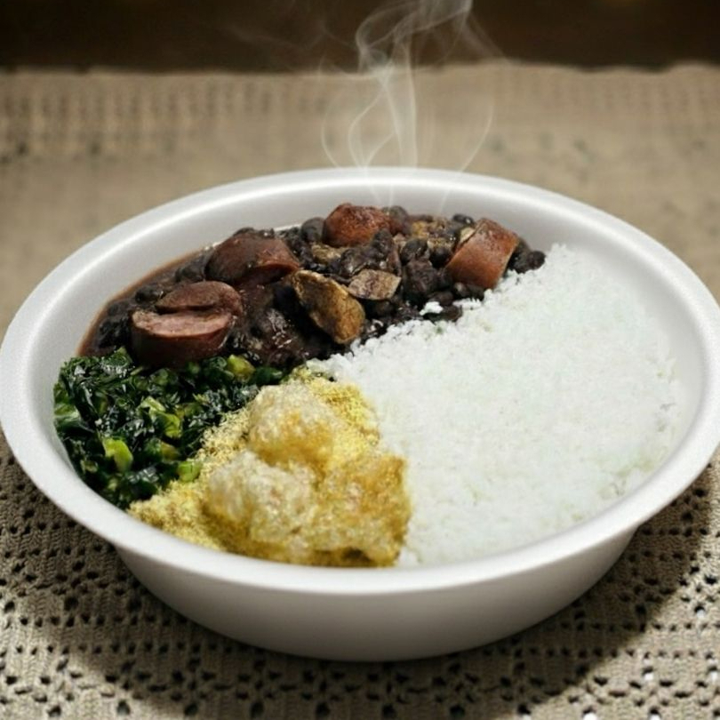 Acompanha Feijoada, mignon suino, calabresa, torresmo, couve, farofa e arroz branco. Indicada para 1 pessoas. aprox (450g)