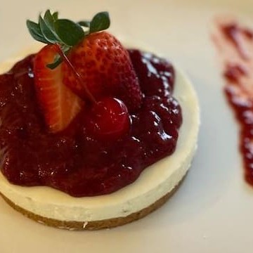 Base de biscoito triturado , creme de creamcheese e Geléia de frutas vermelhas