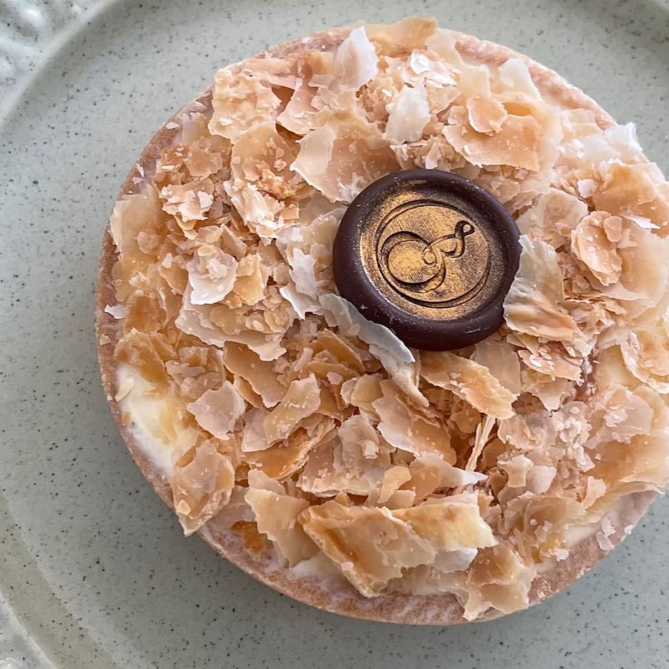 Massa sucre, recheio de creme de coco com abacaxi , nata , massa folhada