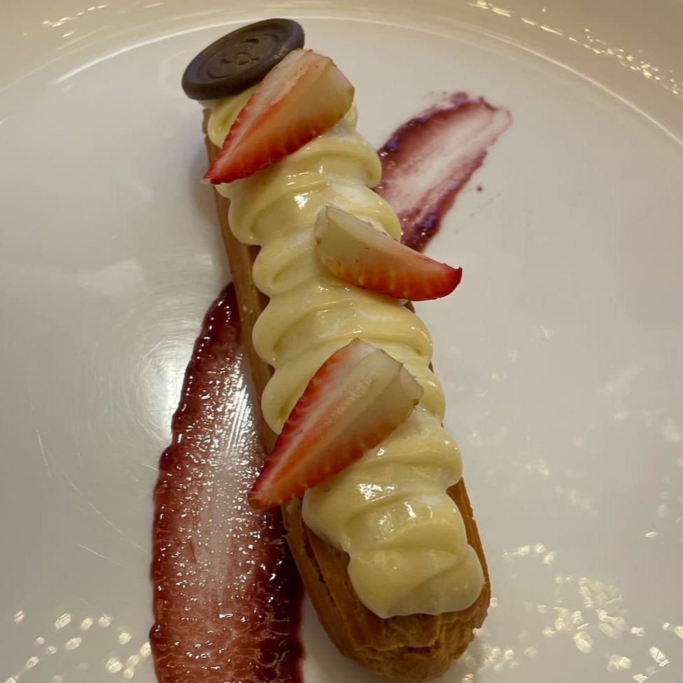 Massa Choux recheada com creme belga e geleia de frutas vermelhas