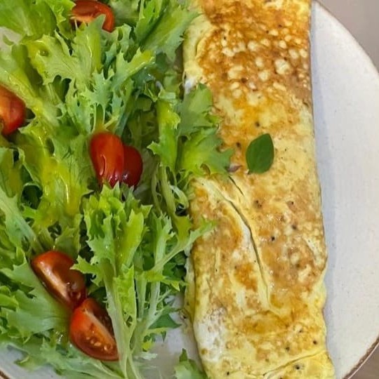 Panqueca de frango com molho bechamel e queijo , acompanha mini salada com molho de mostarda e mel