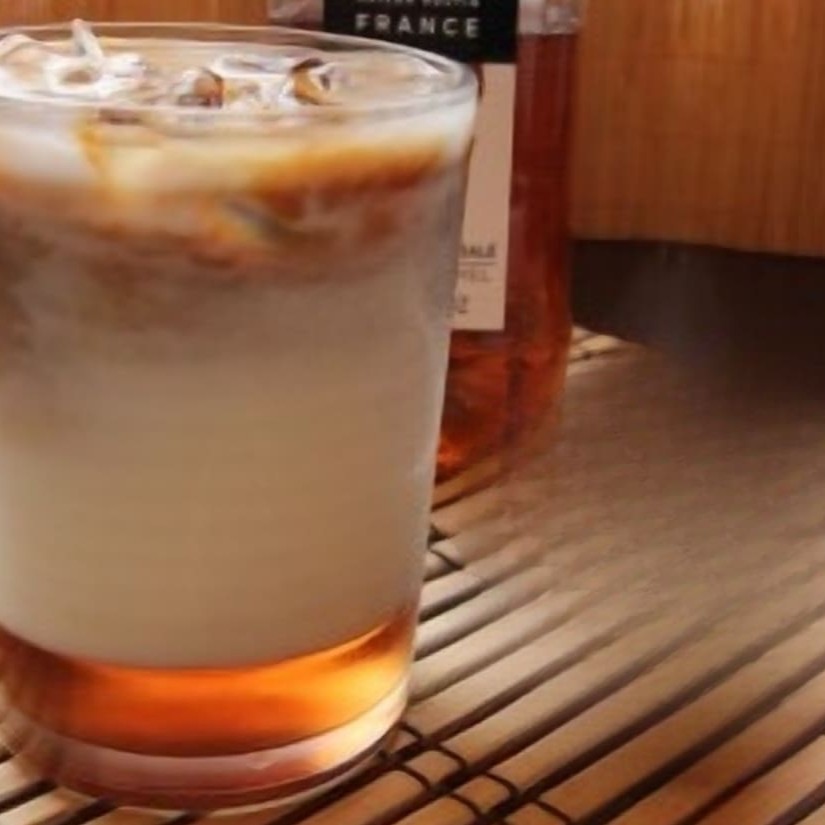Uma dose (generosa de whisky), açucar mascavo, dose de espresso coberto com chantilly.