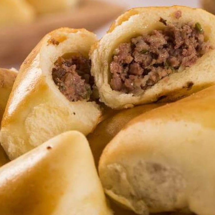 Massa macia recheada com carne moída.