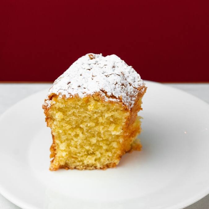 Fatia de bolo tradicional de laranja.