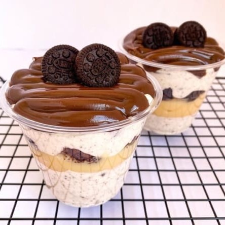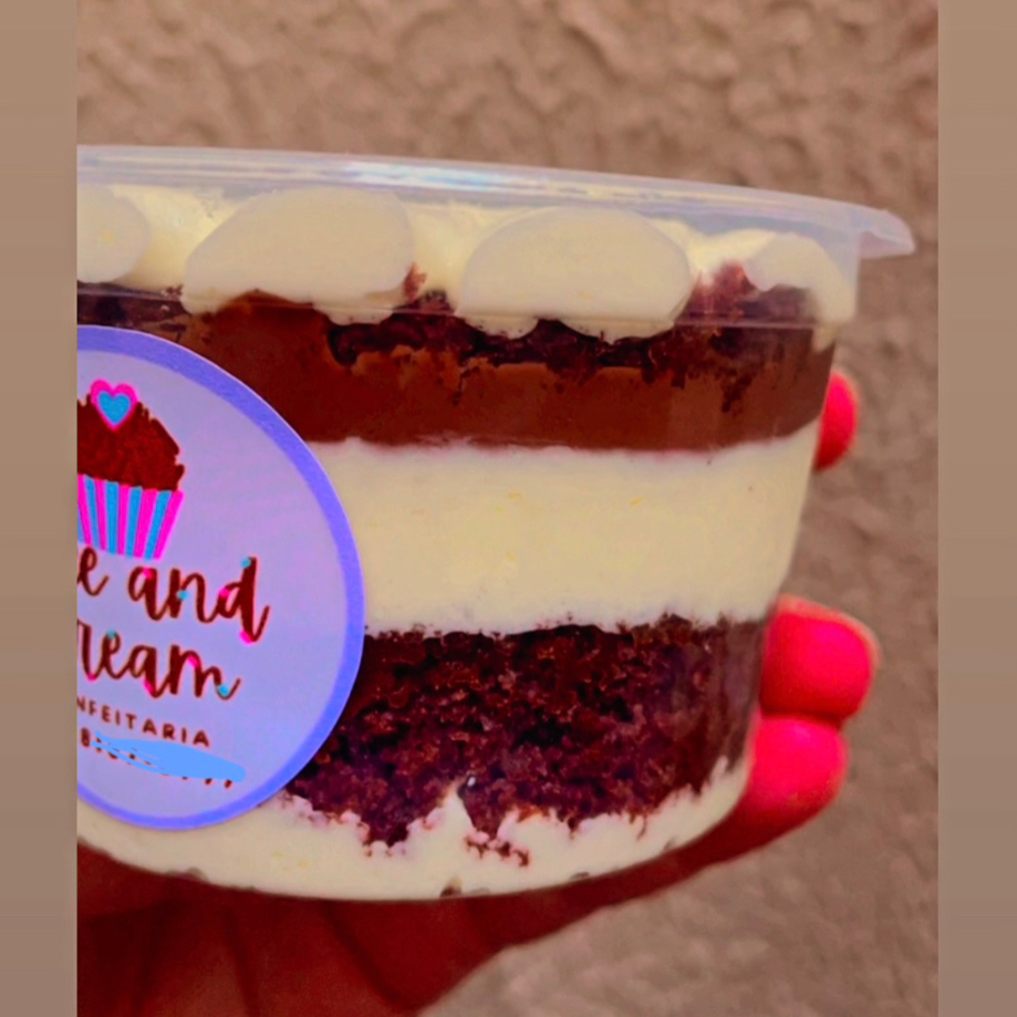 Delicioso creme de Oreo, brownies, brigadeiro chocolate branco finalizado com chocolate meio amargo