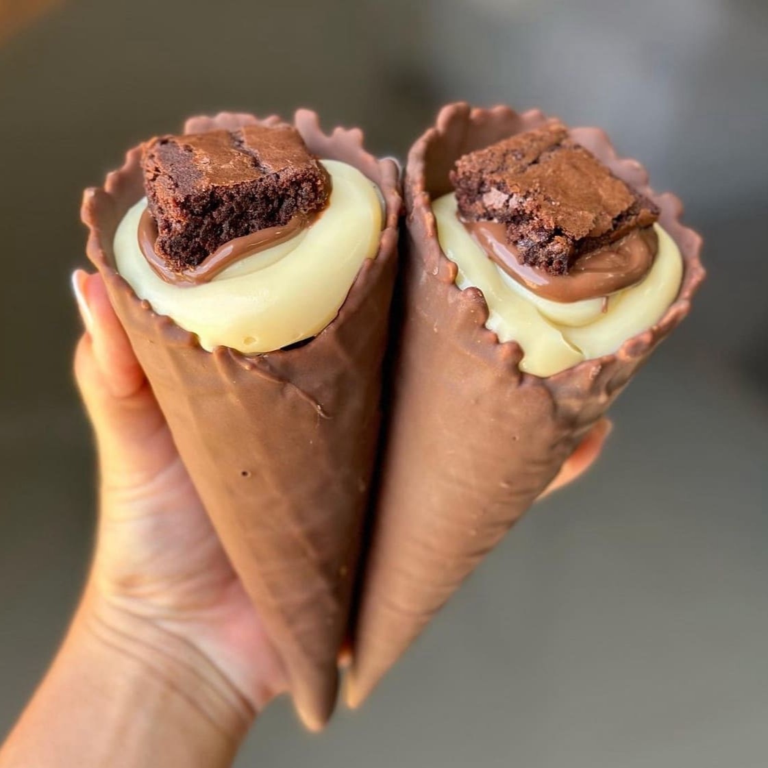 Cascão G de sorvete banhado no chocolate ao leite e super recheado