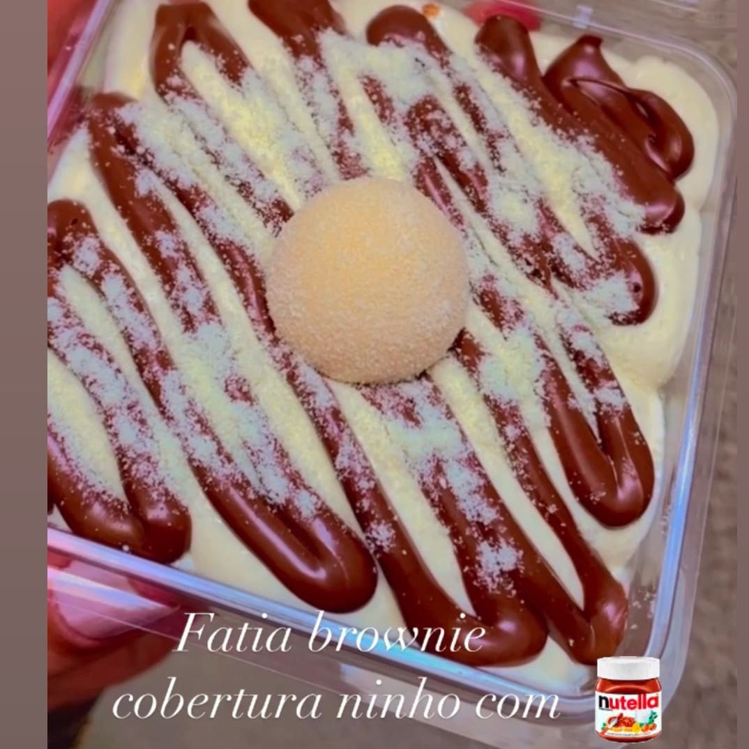 Massa molhadinha chocolate 50%, recheado com nosso creme de Ninho e Nutella.