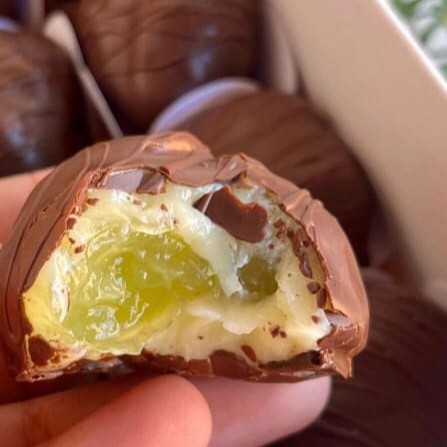Brigadeiro branco, uvas selecionadas e banhadas no chocolate