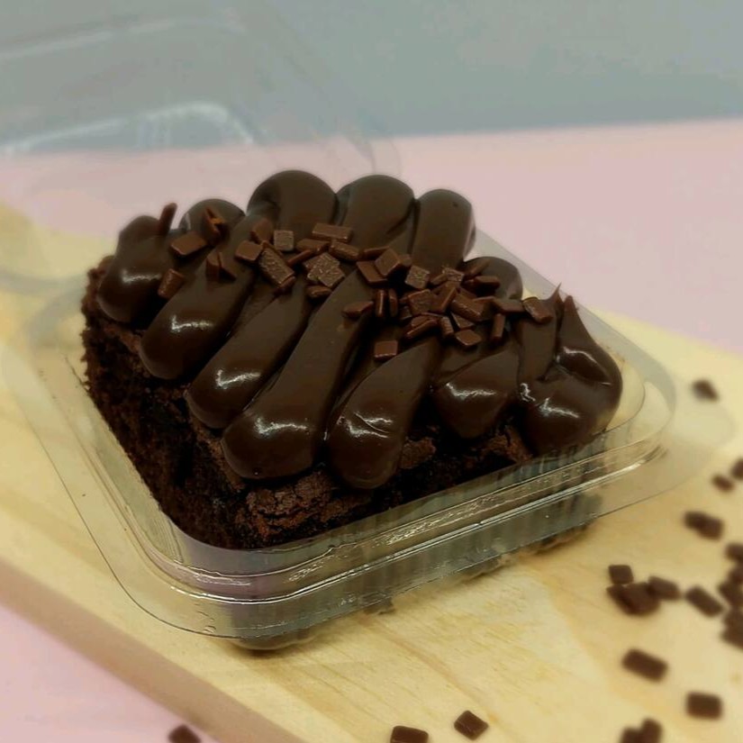 Pedaço de brownie super úmido, feito com chocolate 50%, cobertura chocolatuda, finalizando com granulado de chocolate nobre.