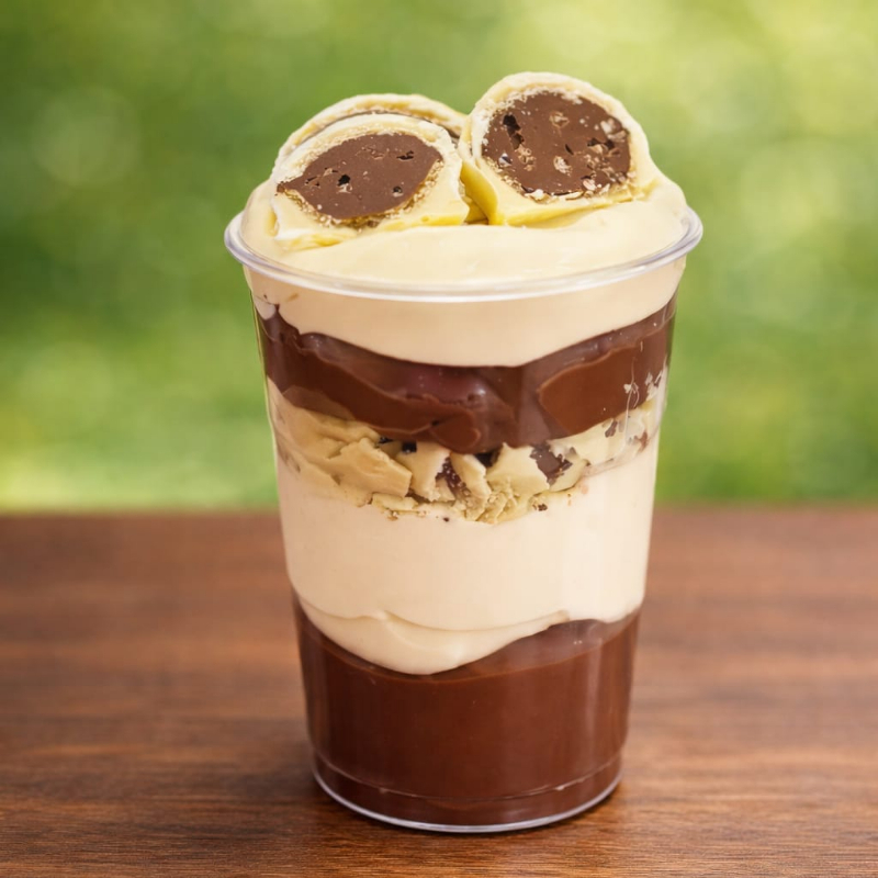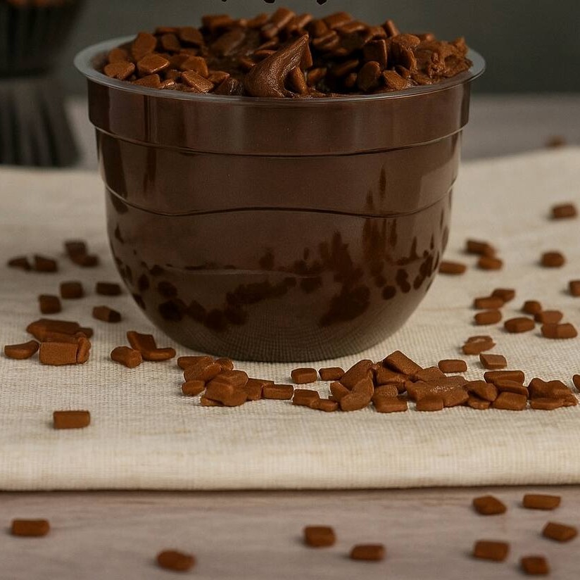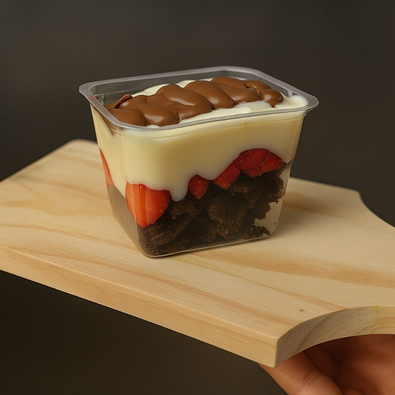 Massa super cremosa de brigadeiro belga 50%, combinada com morangos frescos selecionados e finalizada com granulado de chocolate ao leite. Uma explosão de sabor em cada mordida!