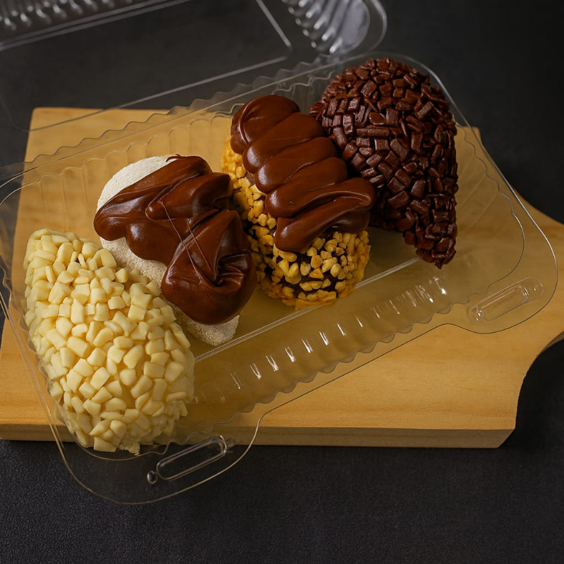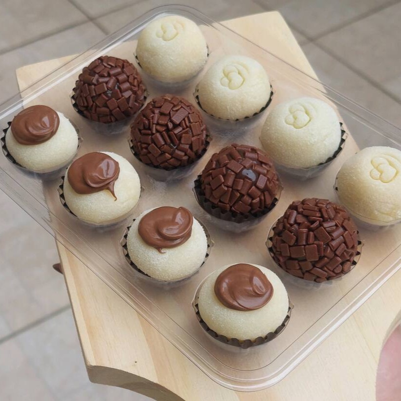 Uma seleção irresistível com 12 doces artesanais (20g cada) nos sabores Brigadeiro Belga, Surpresa de Uva e Ninho com Nutella, embalados em uma elegante bandeja de acetato. Perfeito para presentear ou tornar qualquer ocasião mais especial!