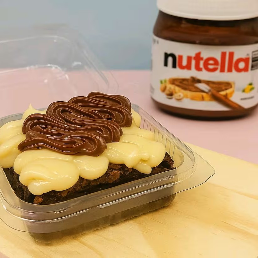 Massa de brownie super úmida, coberta com brigadeiro de Ninho , e Nutella pura .