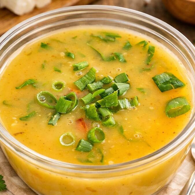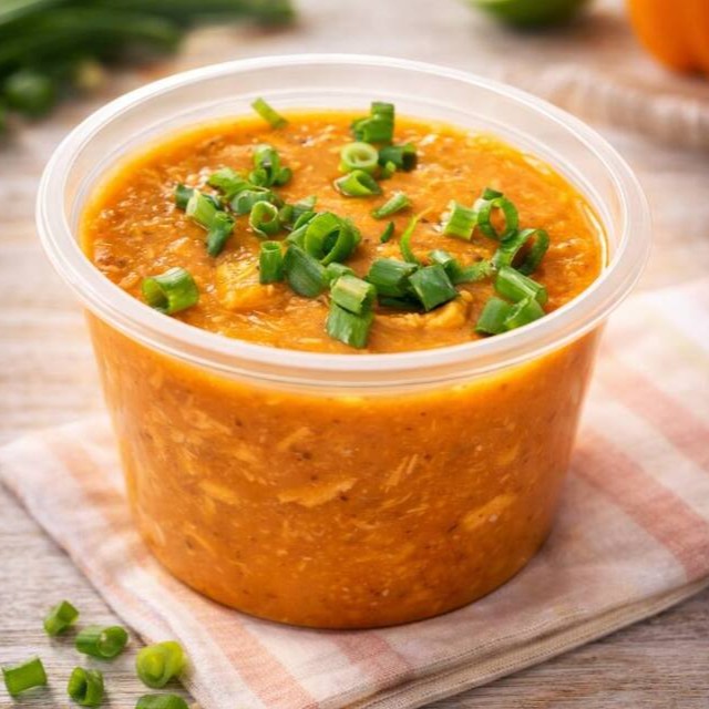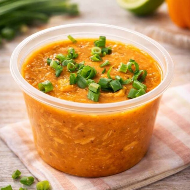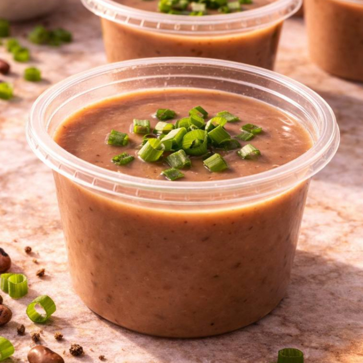 Caldo de Feijão com Frango cremoso e bem temperado, feito com feijão carioca batido, trazendo uma textura aveludada e sabor marcante em cada colherada. Acompanha cebolinha fresca para finalizar, torradinhas crocantes e queijo que deixam a experiência ainda mais completa e reconfortante. Um caldo encorpado, quentinho e cheio de sabor. Perfeito para aquecer e satisfazer ️