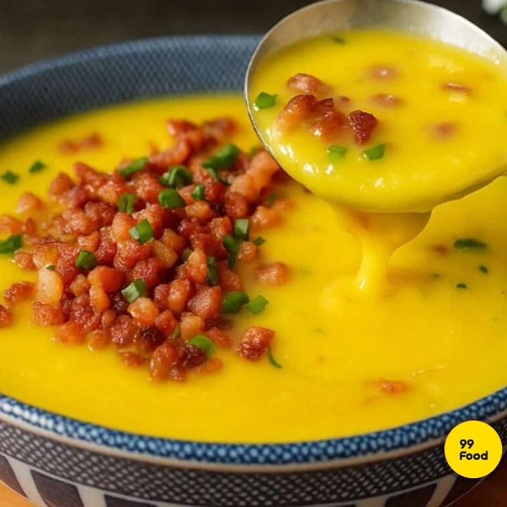Creme de batata salsa , com bacon em cubos e temperos naturais